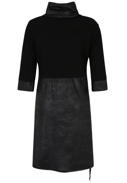 Doris Streich Kleid Long Tunika mit Raffung schwarz mit Kunstleder 44 46 48 50 52 54 56