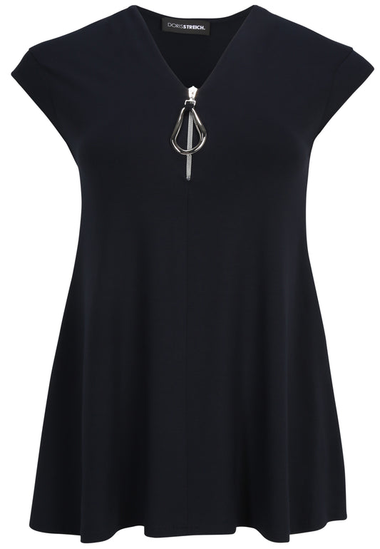 Doris Streich Long-Shirt mit Reißverschluss in Tropfenform und kurzarm Marine 44 46 48 50 52 54 56