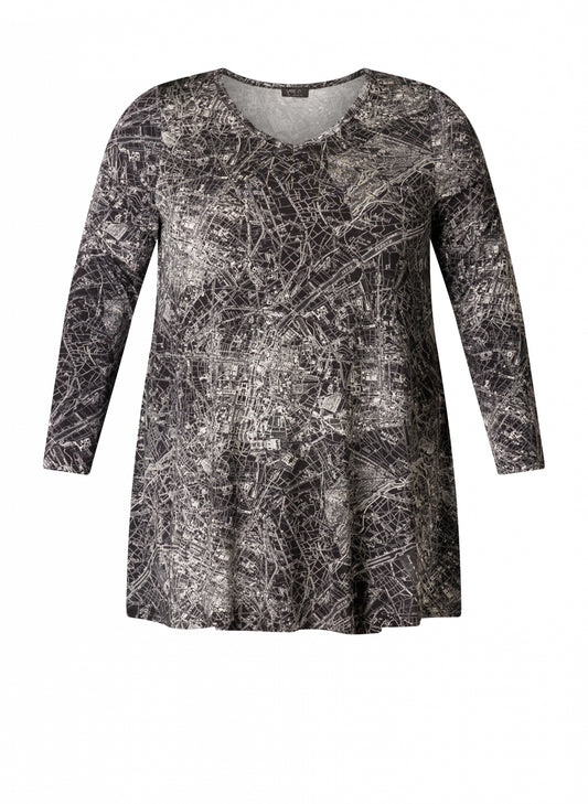 Yesta Shirt A-Form schwarz seidig gemustert V-Ausschnitt 52 54 56 58 60
