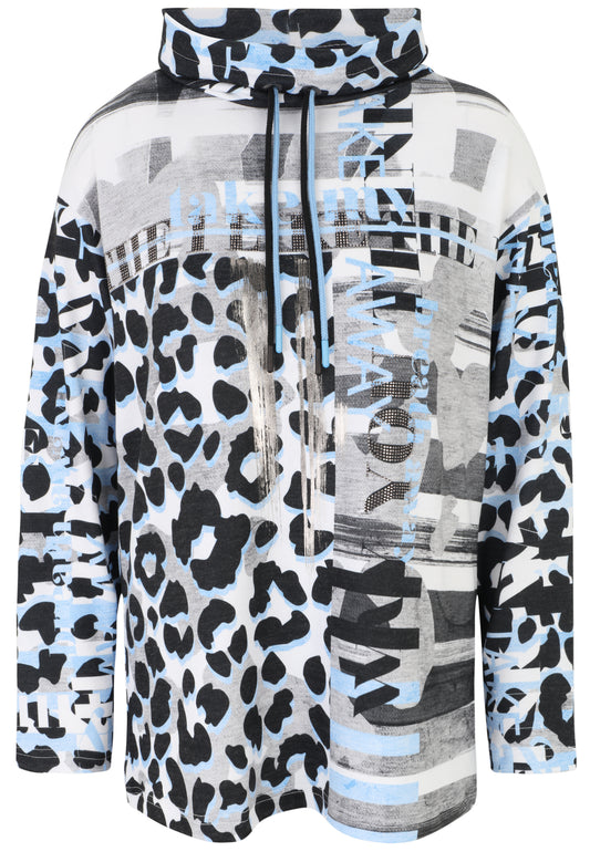 Doris Streich Shirt Pulli Kragen Animal blau grau Gr 52 54