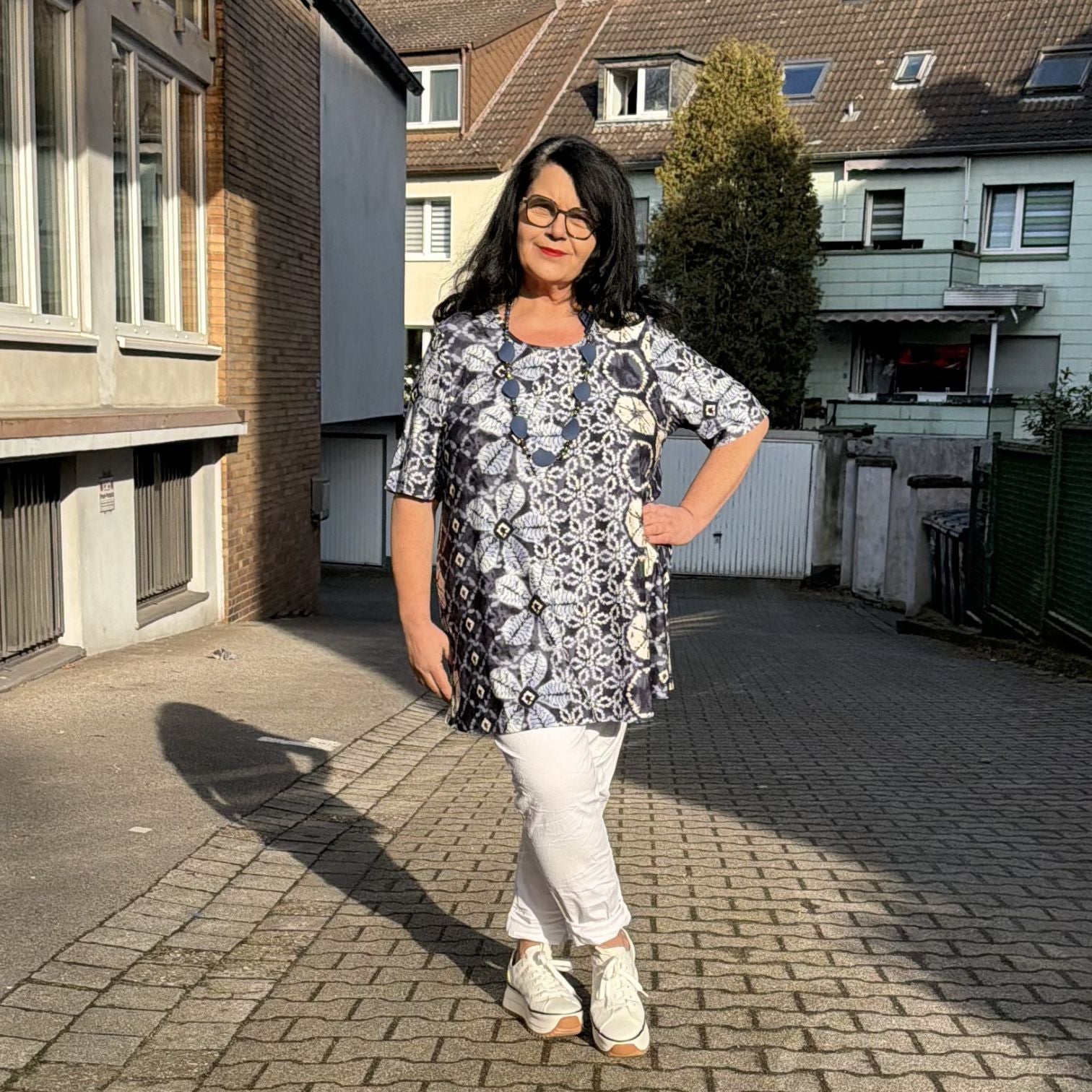 Ob mit einer weißen Hose für einen klaren Sommerlook, lässig zur Jeans oder auch feminin mit einem Rock – kombiniert mit sportlichen Sneakern entsteht ein moderner, alltagstauglicher Stil. Diese Tunika passt sich deinem Leben an und macht jedes Outfit unkompliziert.
