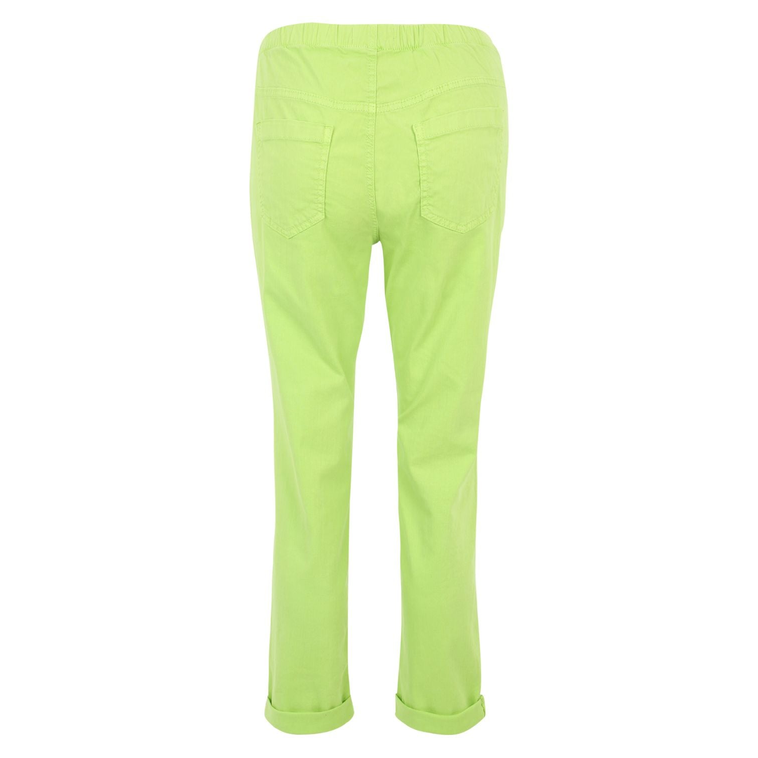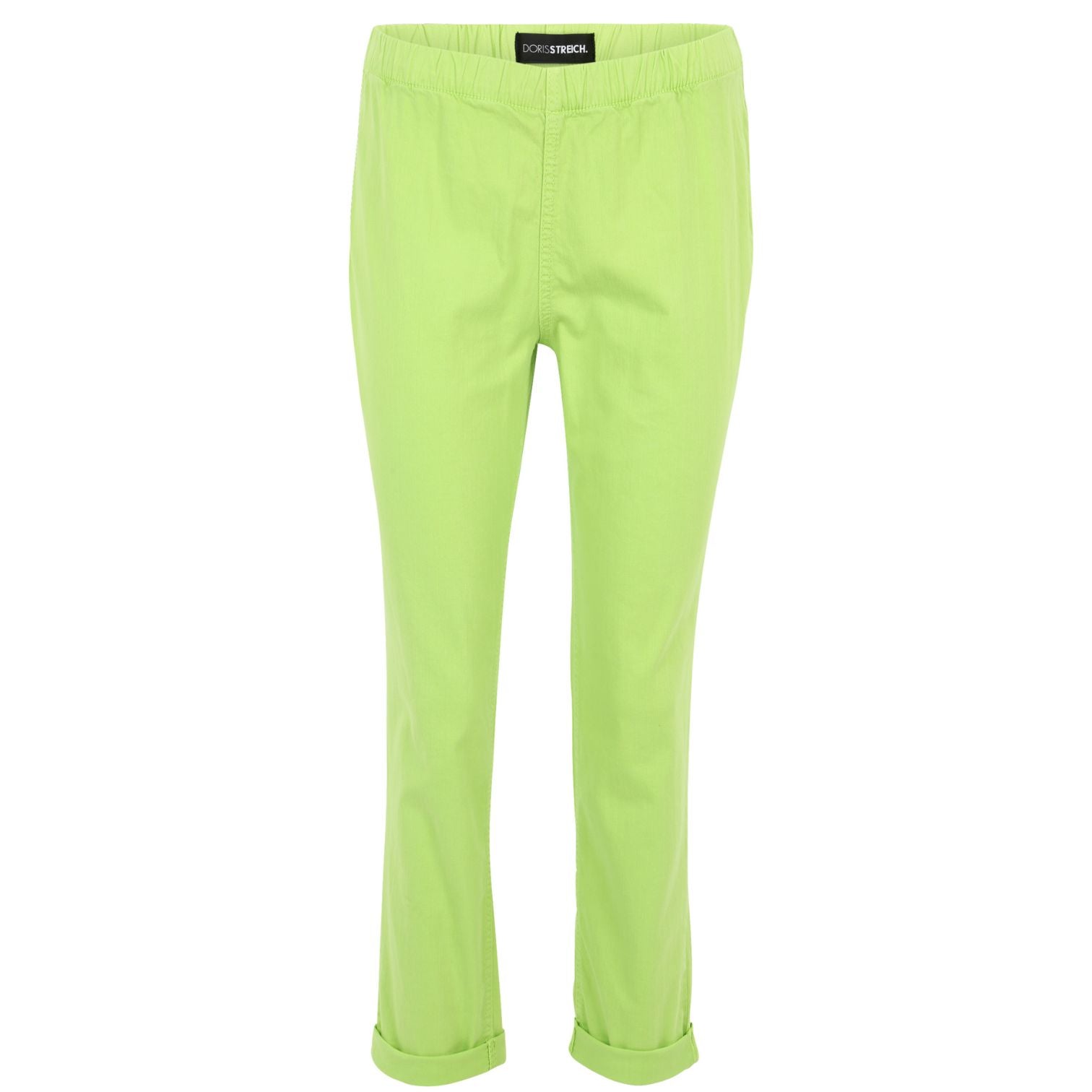 Der schmale Slim-Fit-Schnitt sitzt angenehm, ohne einzuengen, und streckt optisch das Bein. Die super softe, elastische Baumwollqualität schmiegt sich weich an und macht jede Bewegung mit. Besonders angenehm ist der Gummibund ohne Verschluss – einfach reinschlüpfen und wohlfühlen. Auf Eingrifftaschen wurde bewusst verzichtet, damit nichts aufträgt; die Gesäßtaschen sorgen für eine schöne Form.