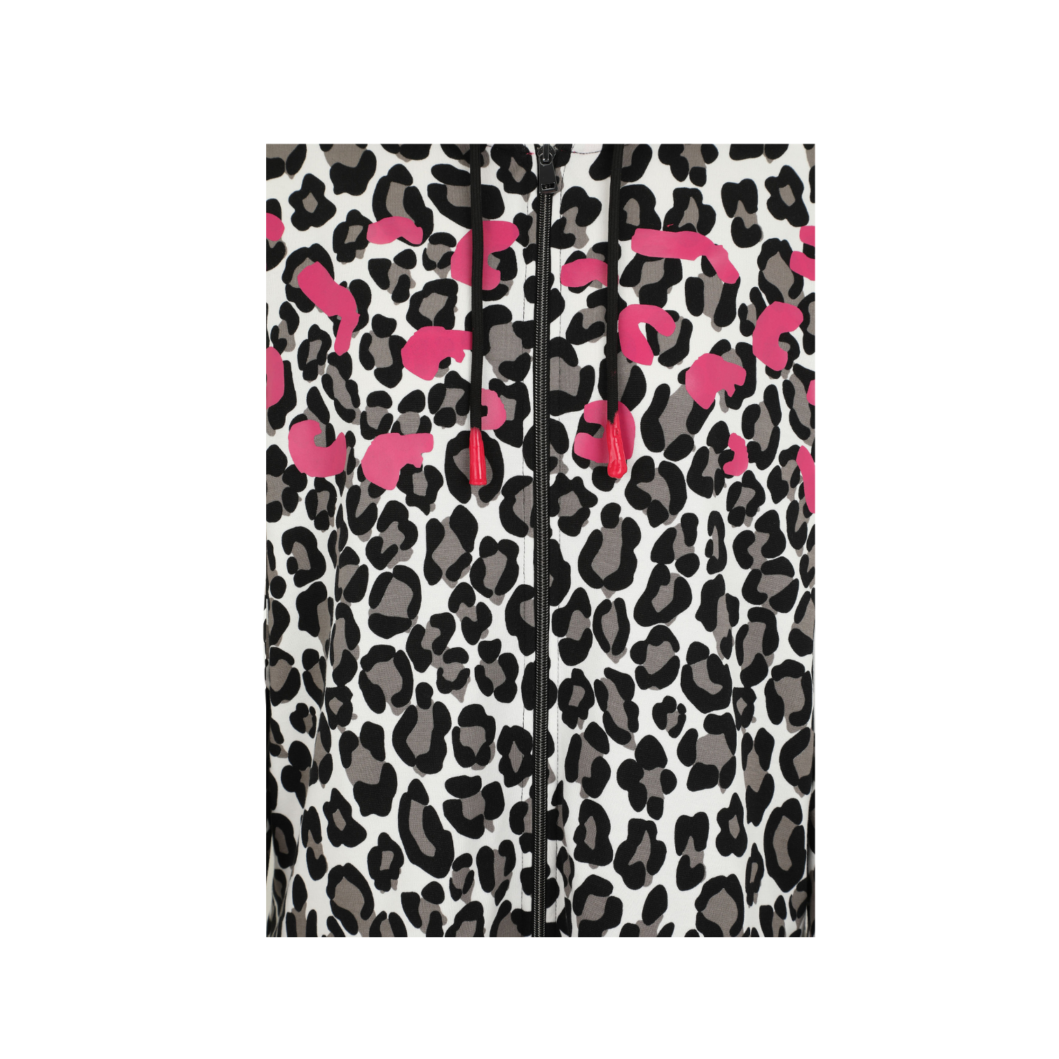 Ein Statement für alle, die sich nicht verstecken wollen: Dieser sportlich-elegante Hoodie/Jacke von Doris Streich verbindet auffälliges Design mit maximalem Komfort. Der kontraststarke Animalprint auf weißem Grund wird durch kräftige pinke Farbakzente modern interpretiert – wild, frech und absolut stylisch!