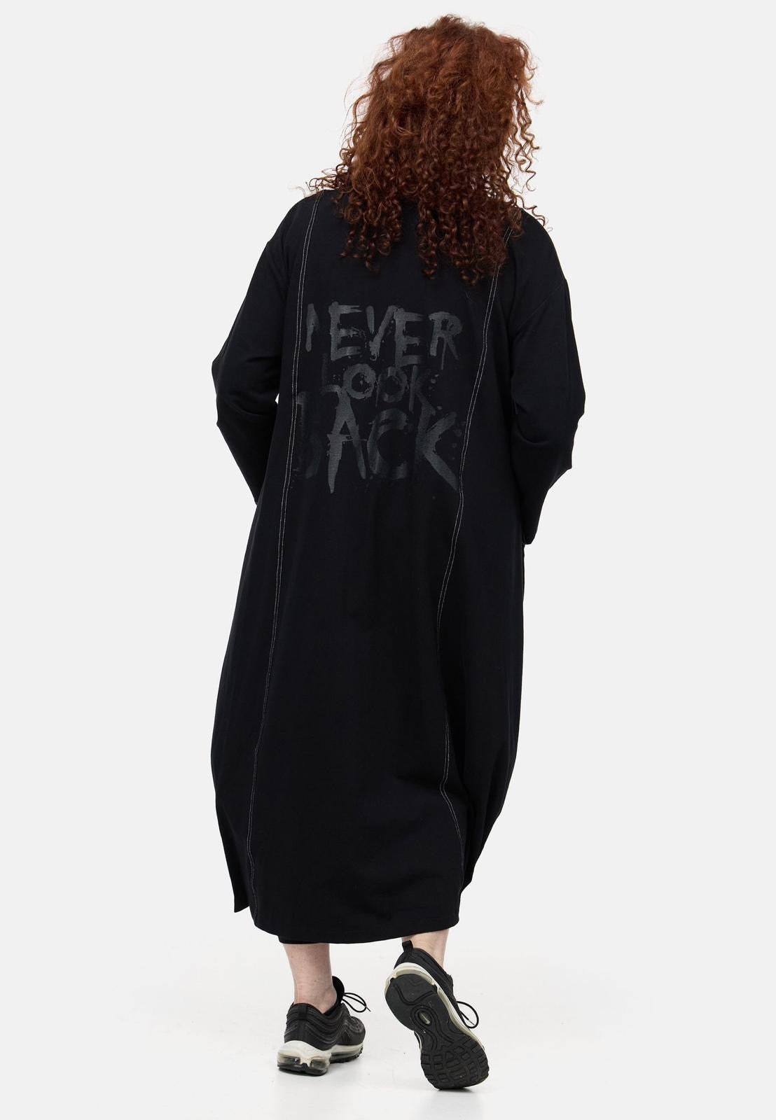 Der Clou ist der breite prägnante Reißverschluss, der sich von entgegengesetzt schließen lässt, sowie der Statementdruck im Rücken.