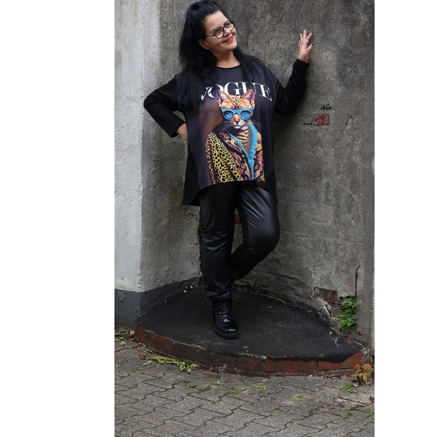 • Frenzi4u Shirt „Fashion Cat“ – Schwarzes Oversize-Shirt mit Glitzerprint  44 46 48 50 52 54 56 58