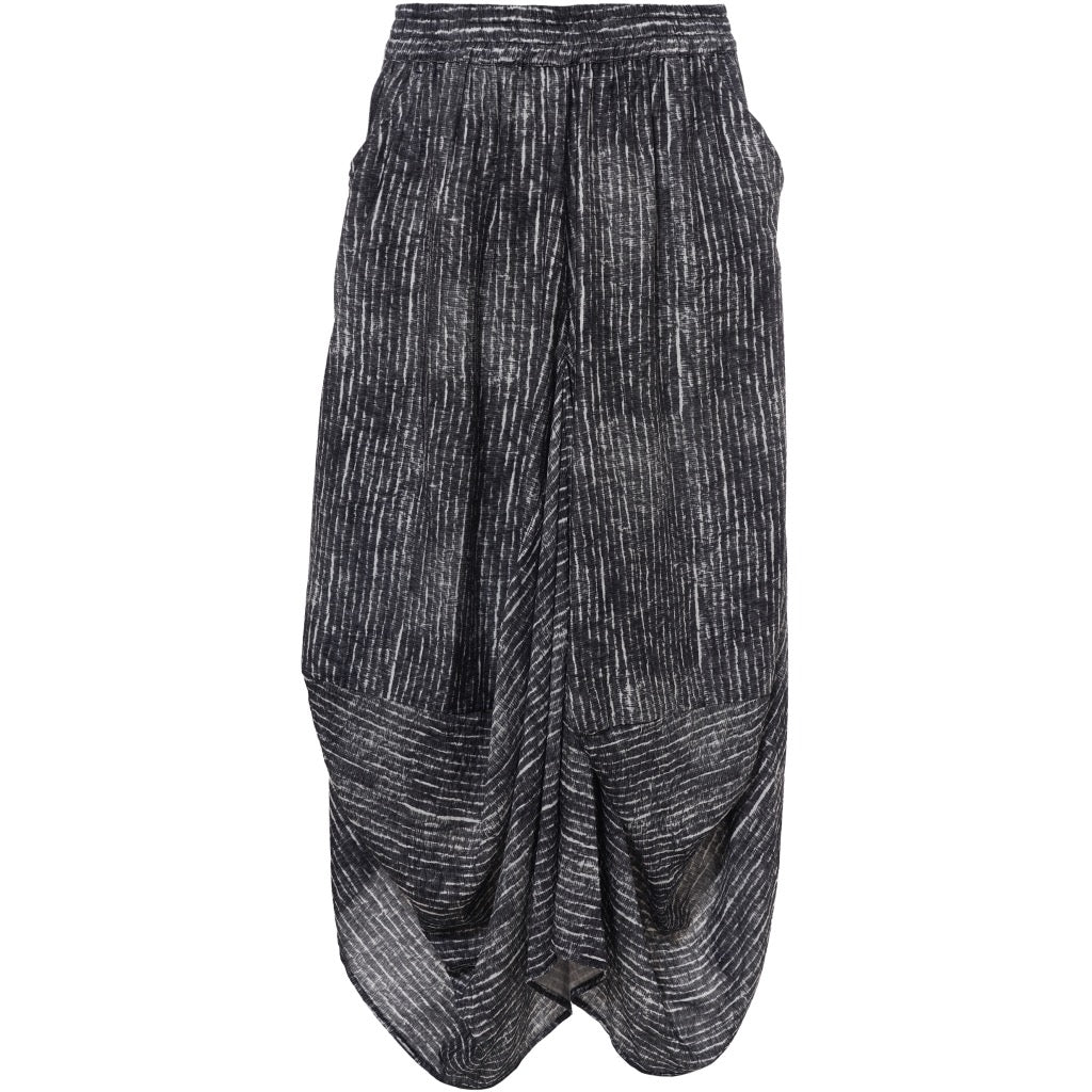Die besondere Schnittführung mit tief angesetztem Saum, die großzügigen Eingrifftaschen und das dezente Linienmuster sorgen für einen modernen, avantgardistischen Look. Der elastische Gummibund bietet dabei maximalen Tragekomfort – lässig, bequem und ein absoluter Hingucker.