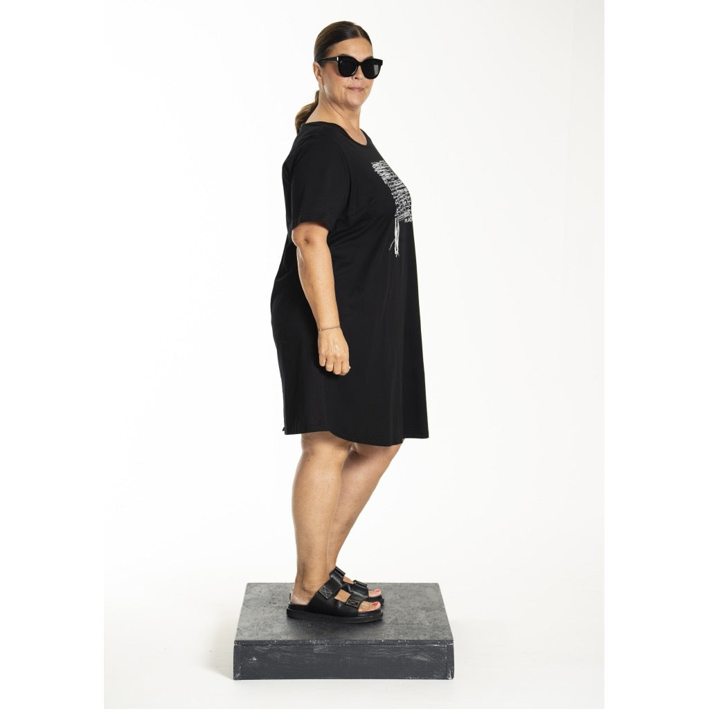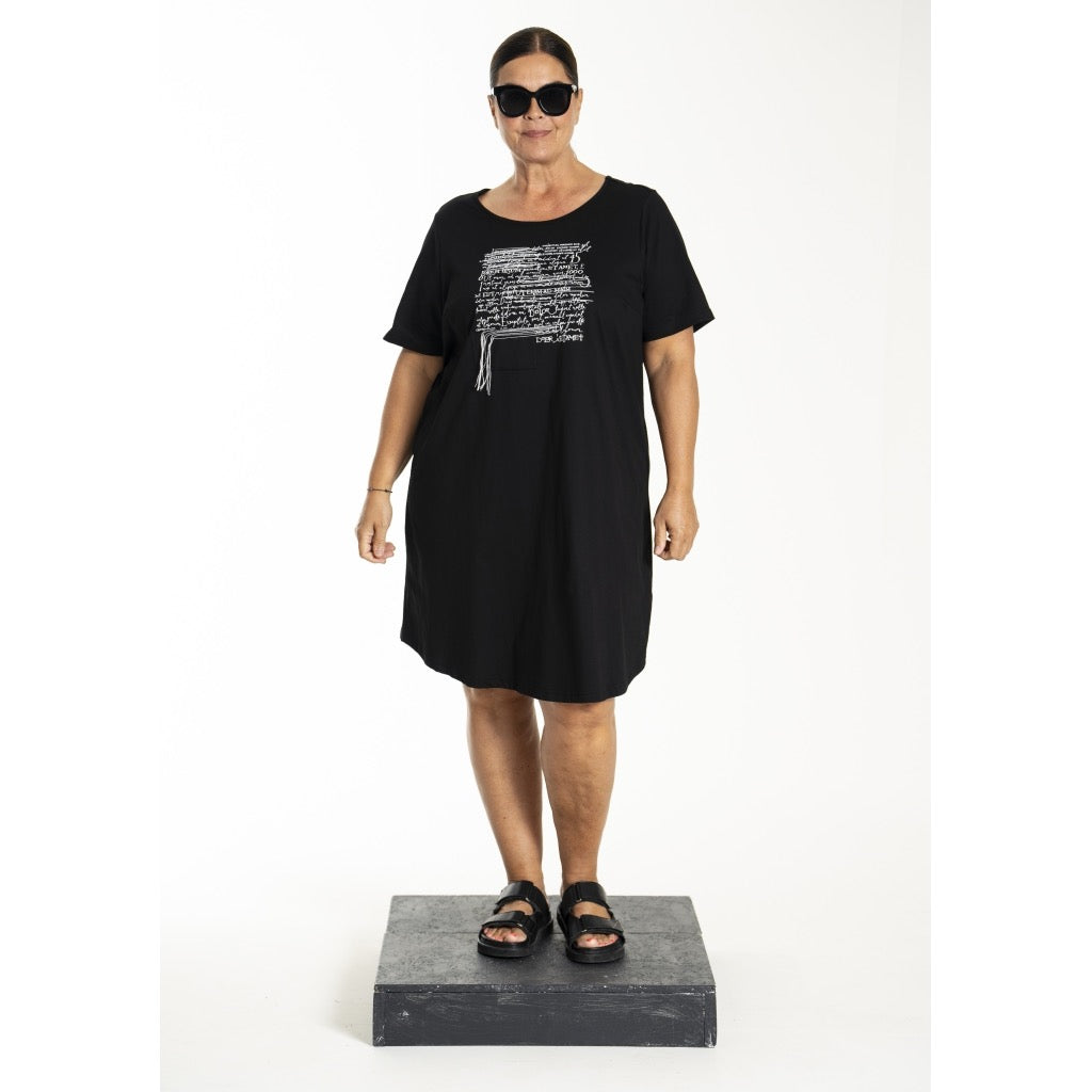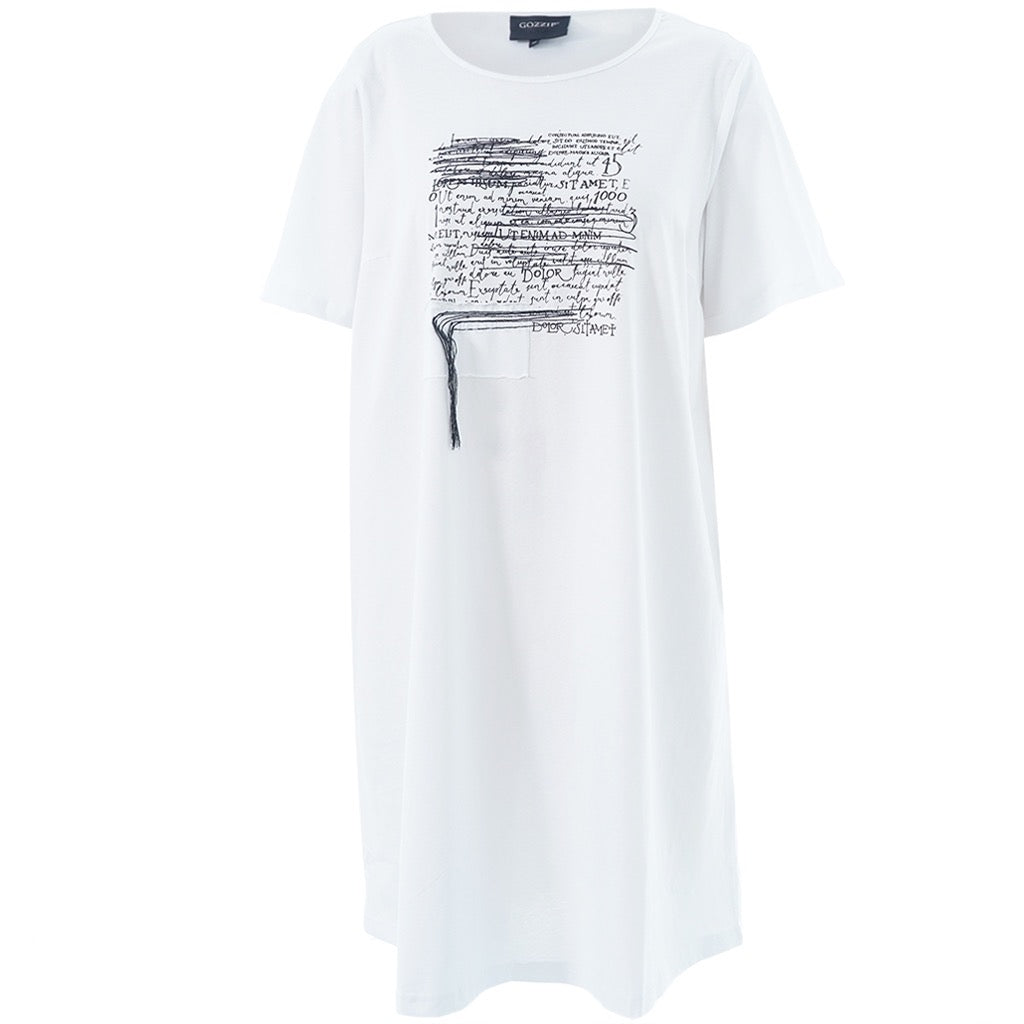 Diese Longtunika von Gozzip überzeugt mit ihrem minimalistischen Design und raffiniertem Frontprint in Handschrift-Optik. Aus angenehm weichem Material gefertigt, lässt sich das Modell sowohl als Kleid als auch als Tunika vielseitig stylen – mit Leggings, Skinny-Jeans oder einfach solo.