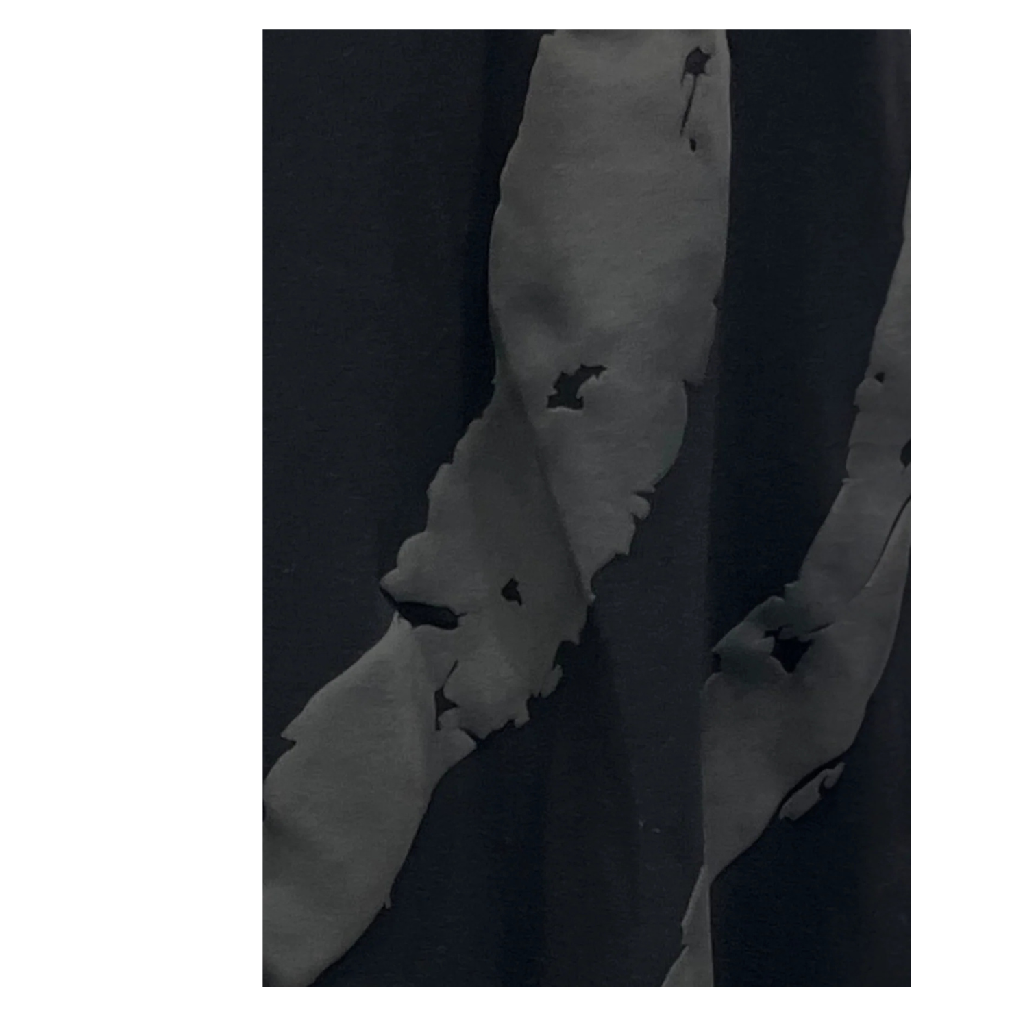 Die Jacke von Vincenzo Allocca ist ein echtes Statement für moderne Curvy Fashion. Der markante Rubber-Print in Grau auf der Rückseite trifft auf plissierte Mesh-Details am Kragen und Saum – ein spannender Mix aus Coolness und Eleganz.